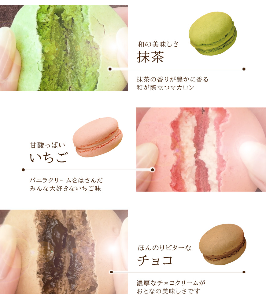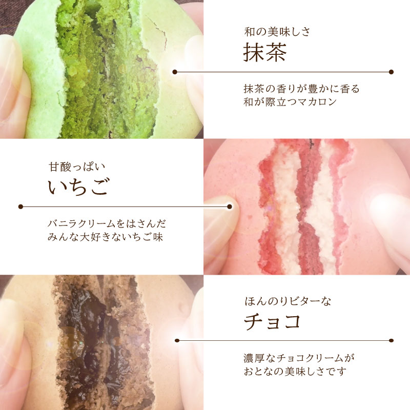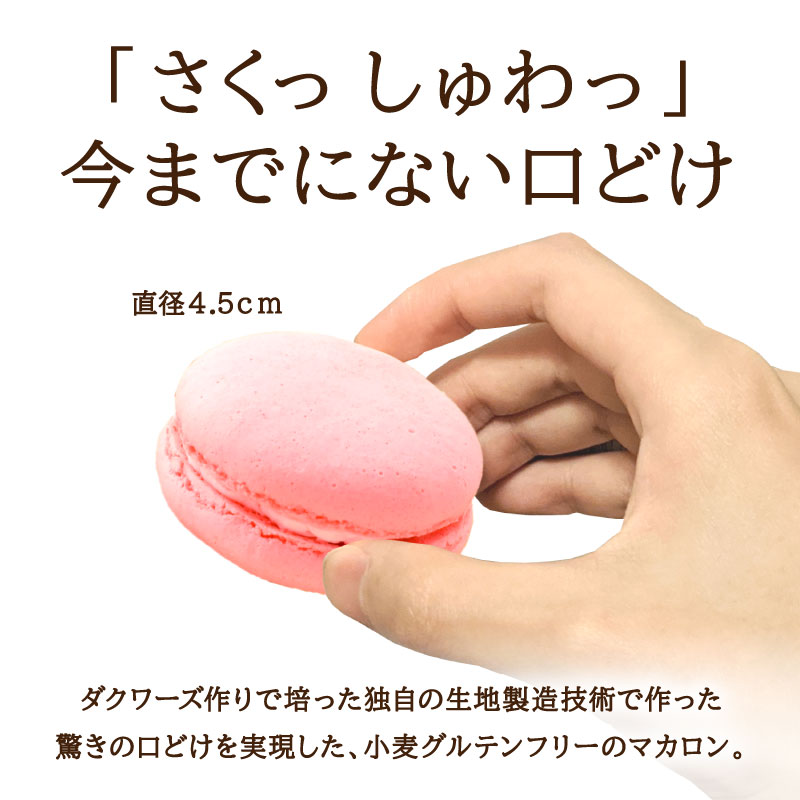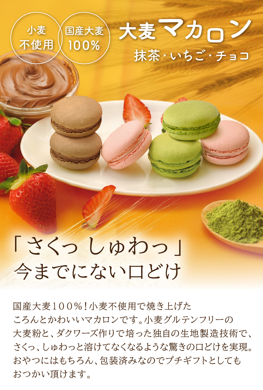 - 品番:5870 大麦マカロン 3種6個入 国産大麦100%!小麦不使用で焼き上げたころんとかわいいマカロンです。グルテンフリーの大麦粉と、ダクワーズ作りで培った独自の生地製造技術で、さくっ、しゅわっと溶けてなくなるような驚きの口どけを実現。おやつにはもちろん、包装済みなのでプチギフトとしてもお使い頂けます。